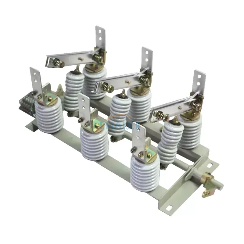 Le sectionneur haute tension intérieur d'Anqiang Power est de type tripolaire, composé d'un cadre de base, d'un arbre rotatif, d'une bielle, d'isolateurs de poteau en porcelaine, de lames d'interrupteur et de borniers. L'arbre rotatif est monté sur le châssis de base, avec trois paires de leviers soudés au sommet. Ces leviers sont reliés aux lames de l'interrupteur via des bielles et des isolateurs en porcelaine. L'arbre rotatif s'étend à partir du cadre de base et n'importe quelle section de celui-ci peut être reliée au mécanisme de commande. Le GN19-12W est un type résistant à la pollution ; le GN19-12G est un type haute altitude ; le GN19-12X comprend un indicateur de tension sous tension intégré ; et le GN19-12ST est un sectionneur de type double direction.